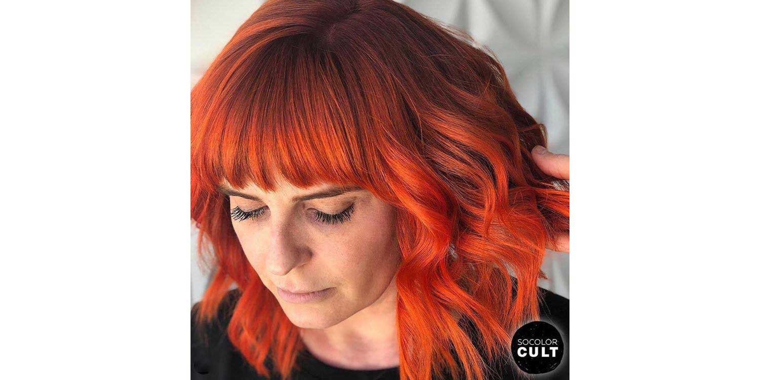 If straight coral is a bit too tame for your exuberant personality, here’s a fiery version of the Pantone shade. It’s infused with spicy hot tones that elevate coral to a Level 11! To keep your hair color bright and vibrant, see your hairstylist regularly for a quick color toning service and try to shampoo with cool or lukewarm water rather than hot.