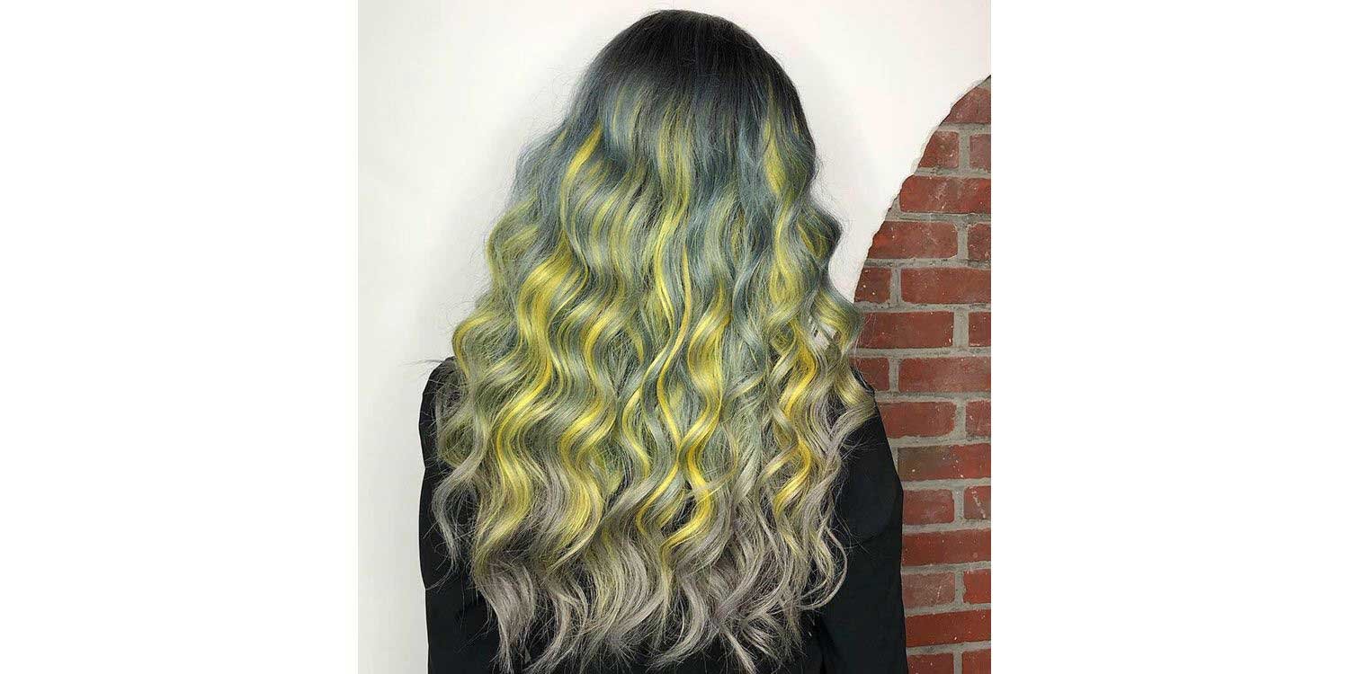 A languid melt of unexpected hues is the perfect way to amplify the drama of long hair. Try a whimsical combination like this pink and green shade, inspired by the shades of a juicy watermelon. The colors should be carefully blended at the “melting” point, to prevent the line from appearing solid.